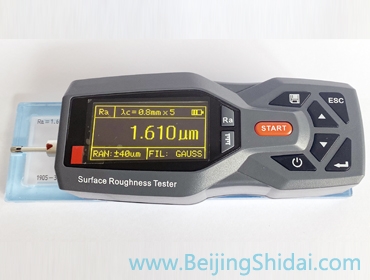 测量工件表面粗糙度时,将传感器放在工件被测表面上,由仪器内部的驱动机构带动传感器沿被测表面做等速滑行,传感器通过内置的锐利触针感受被测表面的粗糙度,此时工件被测表面的粗糙度引起触针产生位移,该位移使传感器电感线圈的电感量发生变化,从而在相敏整流器的输出端产生与被测表面粗糙度成比例的模拟信号,该信号经过放大及电平转换之后进入数据采集系统,DSP芯片将采集的数据进行数字滤波和参数计算,测量结果在液晶显示器上读出,也可在打印机上输出,还可以与 PC 机进行通讯。